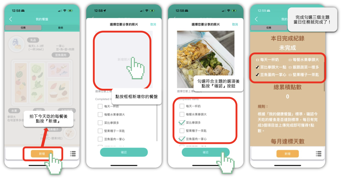 健康積極組A組:回傳每日飲食情形,於任務卡上傳當日飲食,於下周營養師提供給您建議。
