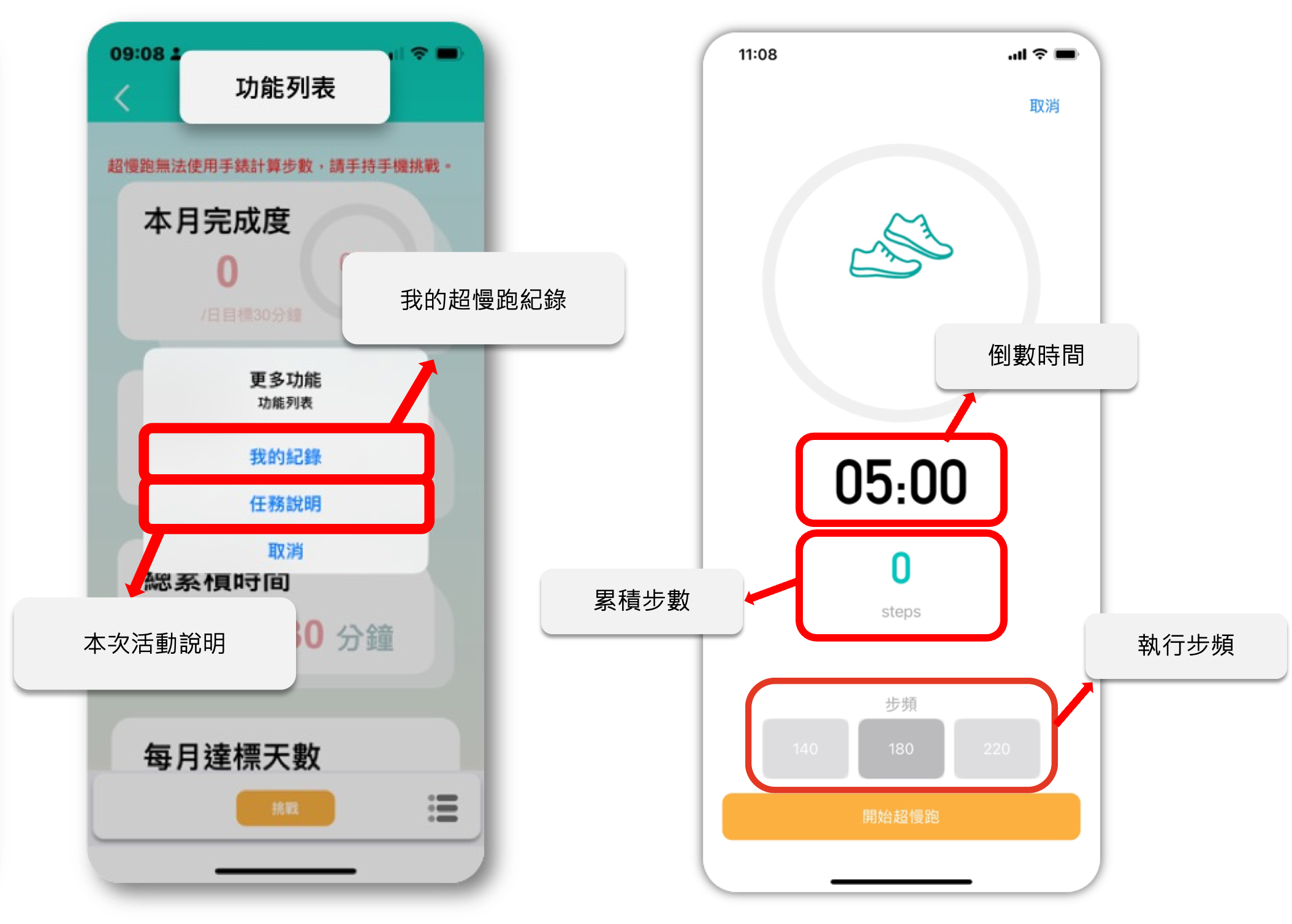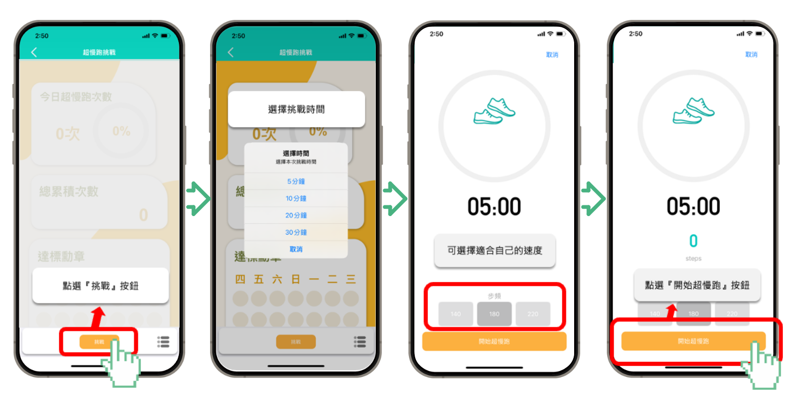 - 點選『開始超慢跑』按鈕,開始跑吧!