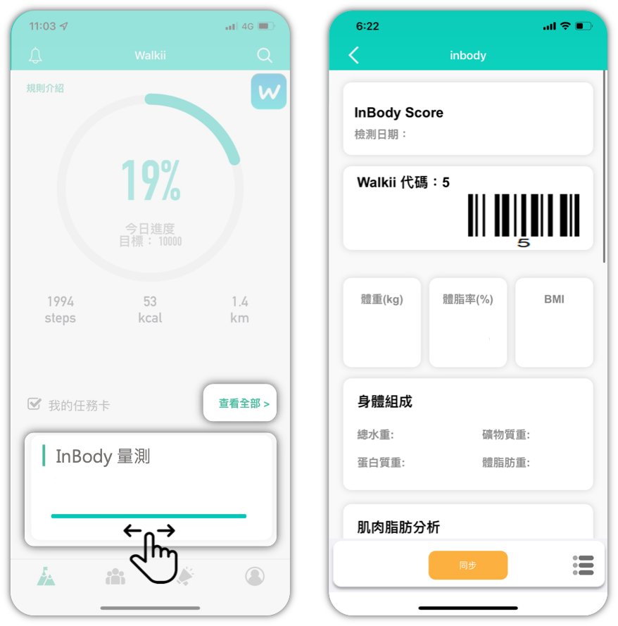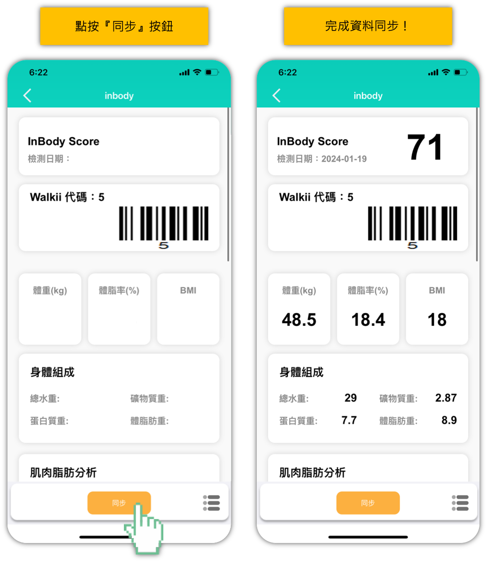 - 回到Walkii APP,點按『同步』按鈕
