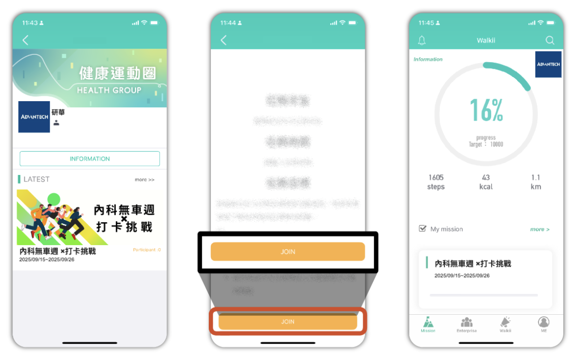 - 點入『內科無車週』任務卡,點選『我要參加』
