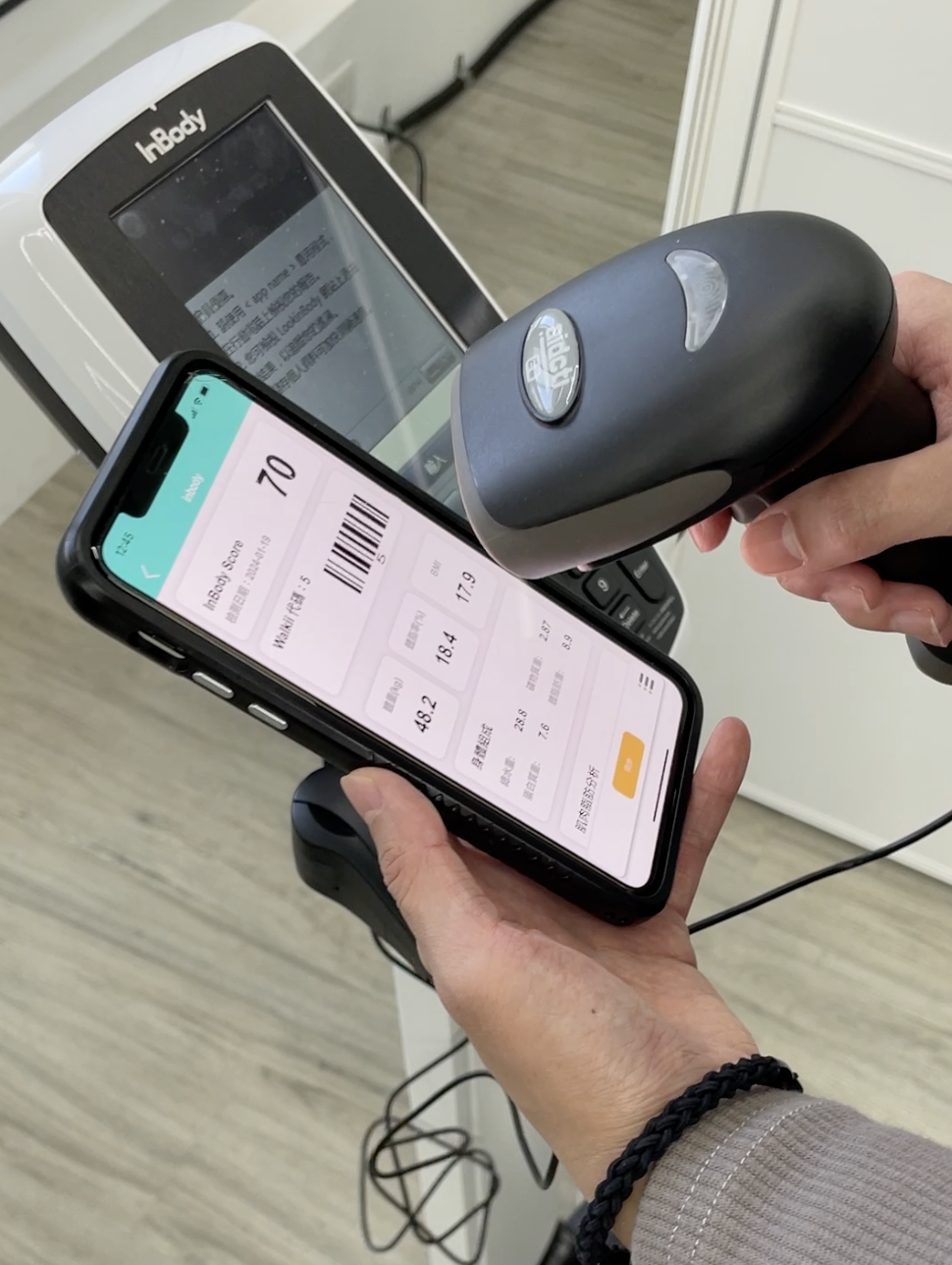 - 使用機器的掃碼機,掃描任務卡內的專屬個人條碼 / Use the InBody machine's scanner to scan your personal barcode in the app.