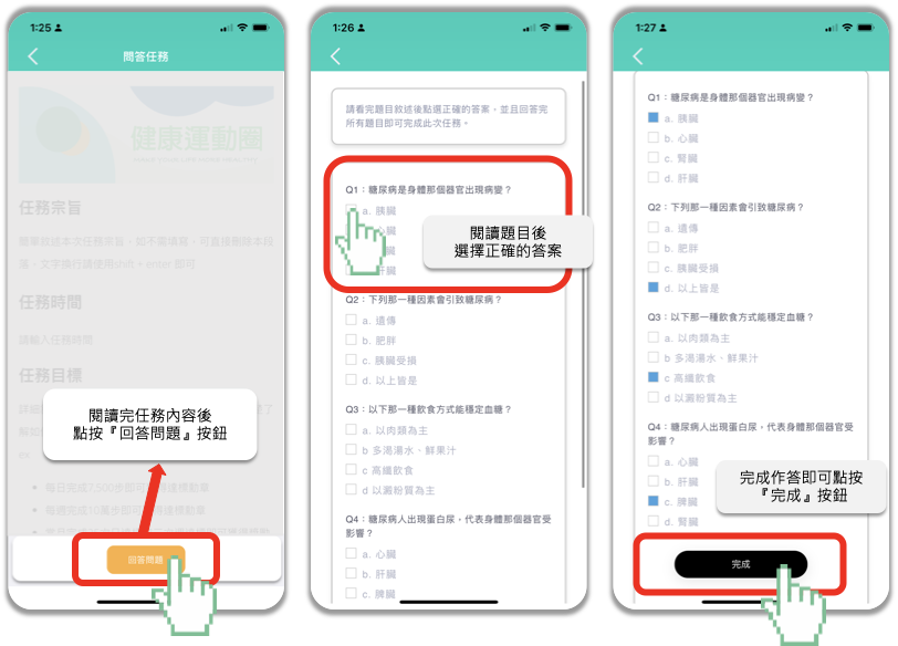 - 每日開啟APP點選任務卡內的『上傳數據』按鈕上傳當日數據。 如當日忘記上傳數據,可使用APP內的『數據補登』功能,七日內的紀錄皆可上傳。
