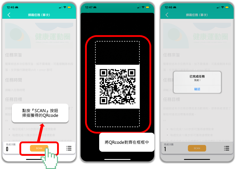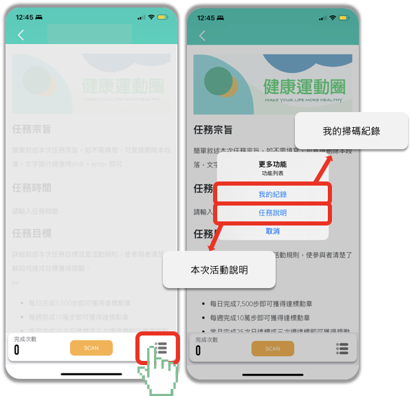 - 打開任務卡後,點按下方『SCAN』掃碼按鈕