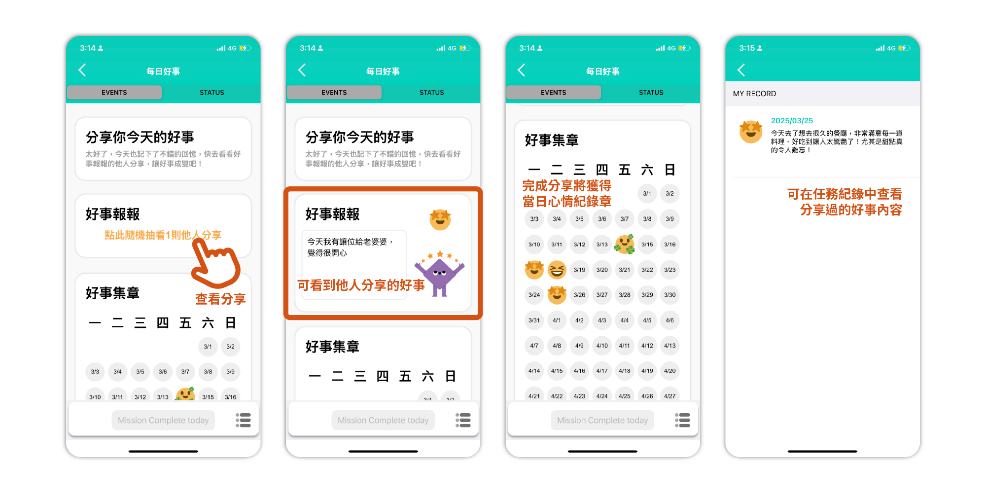 - 確認沒問題,點按『分享』按鈕即完成今日分享!