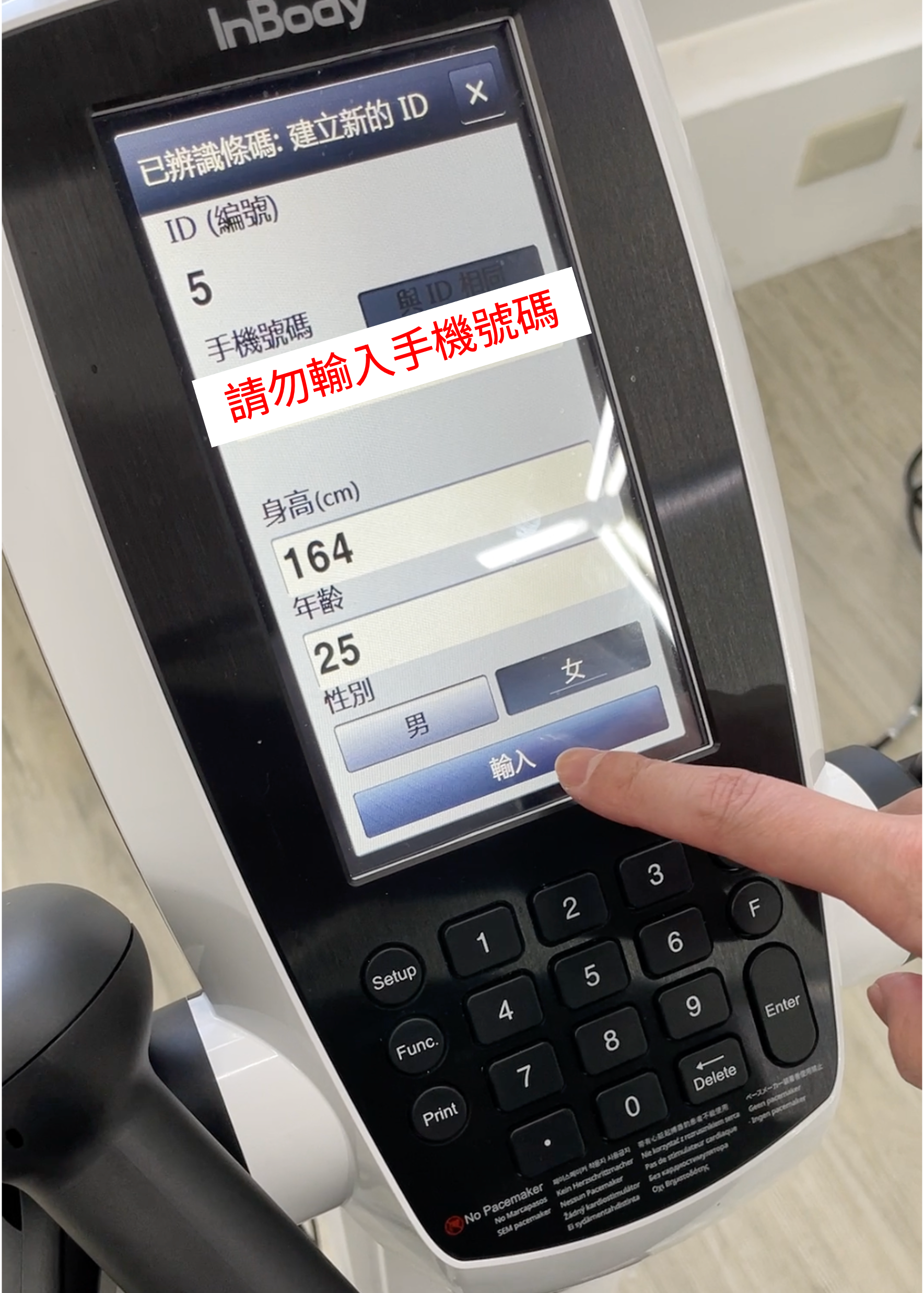 - 於InBody上確認個人資訊是否正確 / Confirm your personal info on the InBody screen.