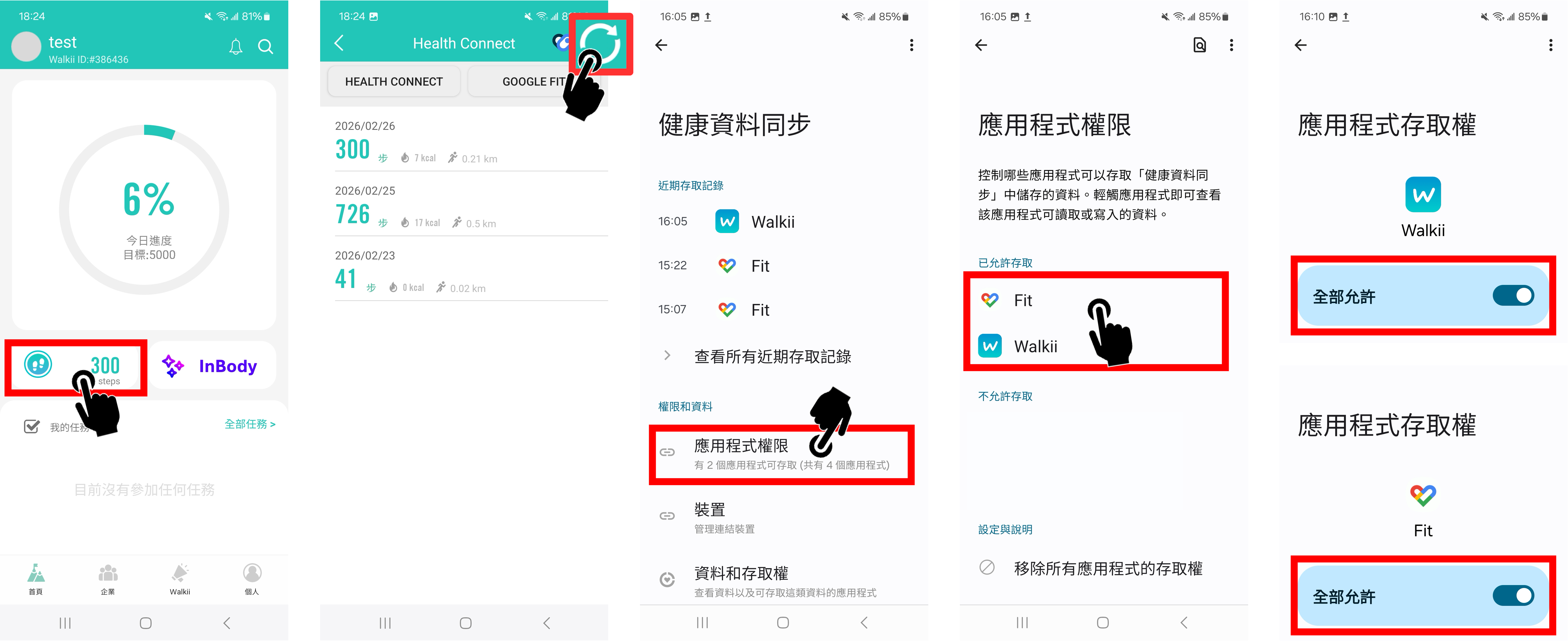 點擊「應用程式權限」後檢查Fit 跟 Walkii 這兩個是否都有在【已允許存取】區域