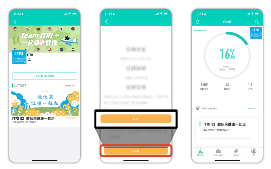 Go to "ITRI Join ~健走大富翁" mission and click "Join".