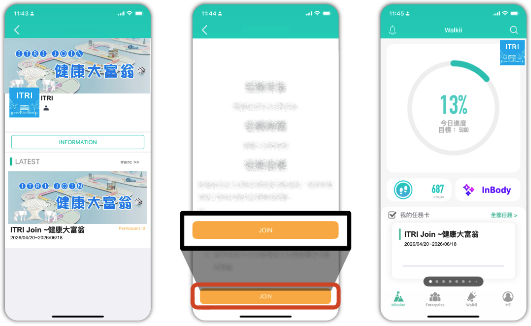 - 點入『ITRI Join ~健走大富翁』任務卡,點選『我要參加』