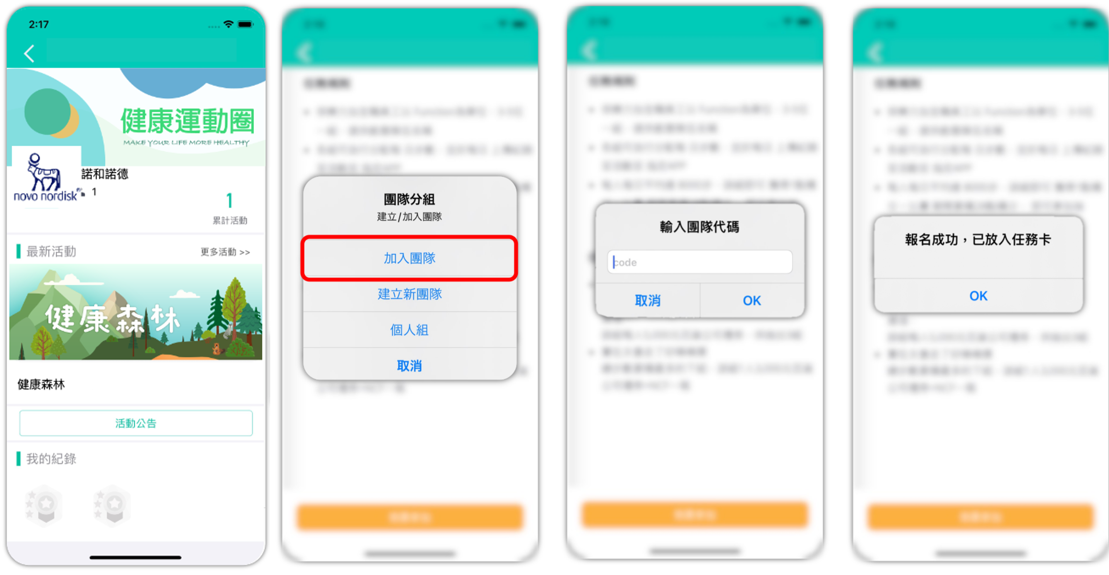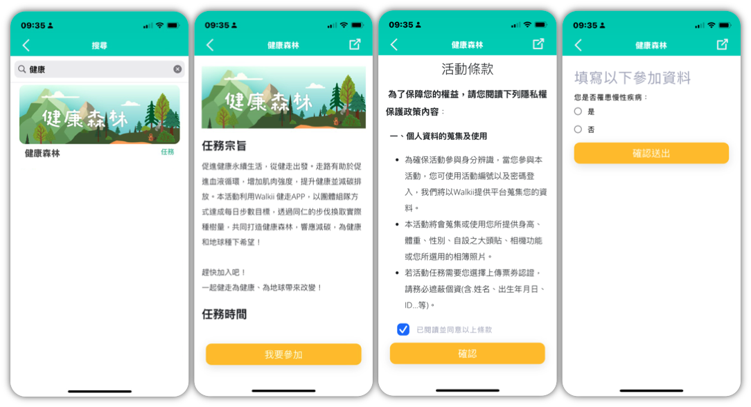 點選搜尋(右上角放大鏡),輸入『健康森林』,點選加入『健康森林 Health Forest 』活動