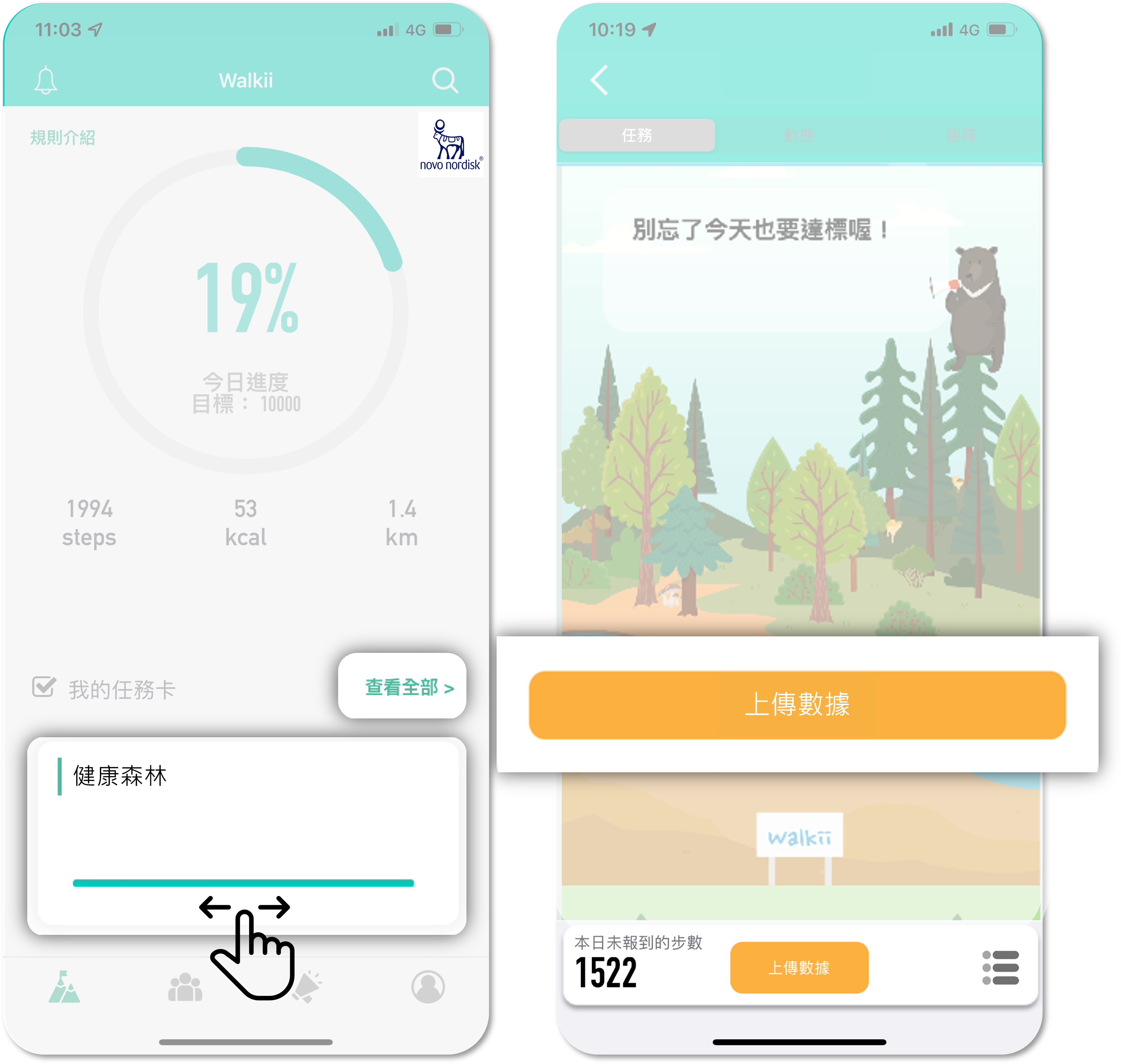 - Open walkii app and get into the mission『健康森林 Health Forest 』